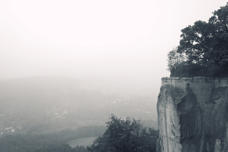Schrammsteine, view over sandstone cliff into deep Saxony Switzerland,