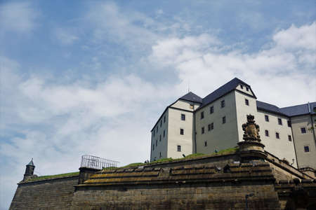 Koenigstein fortress and part of the surrounding wall in front of cloudy sky