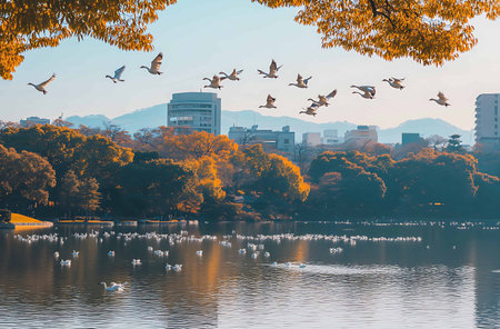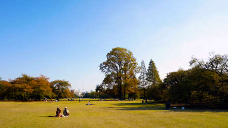 TOKYO, JAPAN - OCTOBER 31, 2017: Autumn in the Shinjuku park. Copy space for text