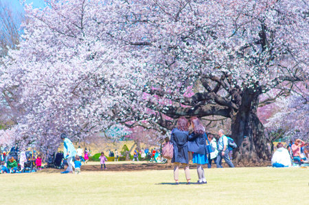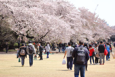 Shinjuku, Tokyo, Japan - April 13, 2017:Cherry blossoms(sakura hanami) festival at Shinjuku Gyoen National Gardens,Tokyo in Japan.This area is popular sakura viewpoint an eminent garden in Shinjuku