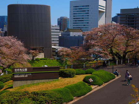 Cherry blossoms in full bloom in Chidorigabuchi in Tokyo