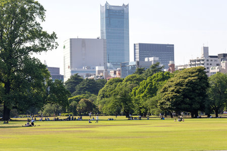 Tokyo, Japan - 17 May 2024: Shinjuku Gyoen National Garden in Tokyo. It is a public park known as a popular spot for enjoying cherry blossoms.