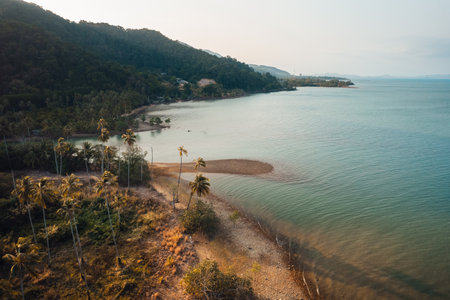 Aerial view of beautiful tropical island at sunset. Travel and vacation concept.