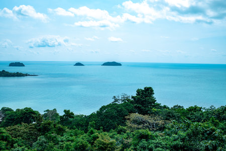Beautiful seascape view with endless horizon at kai bae viewpoint on koh chang trat thailand.Ko Chang island, known also as 'Elephant Island' named because of its elephant shaped headland