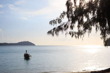 Coral island, koh He, beach and boats in Phuket province, Thailand