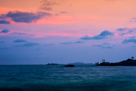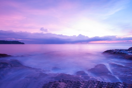 The rocky shore or beach, Andaman Sea, Thailand. Sunset