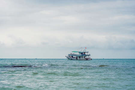 Travel to Don Sak over turquoise water in tropical landscape via ferry Surat Thani Thailand.