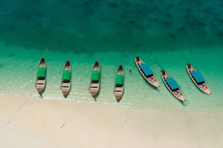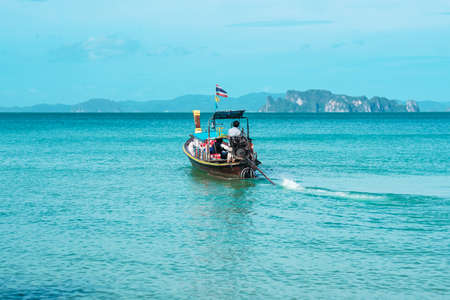 longtail boat on Tubkaak beach ready to Hong island, Krabi, Thailand. landmark, destination Southeast Asia Travel, vacation and holiday concept