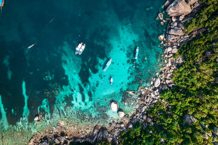 islands and tropical blue bays, bird's eye view,at Koh Tao