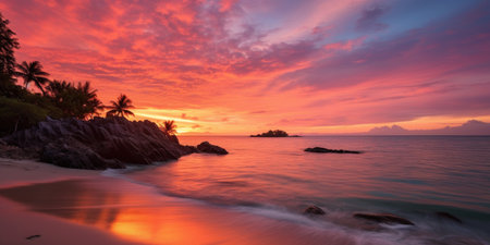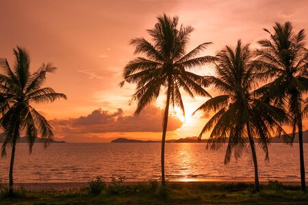 Sunset landscape. beach sunset. palm trees silhouette on sunset tropical beach, China