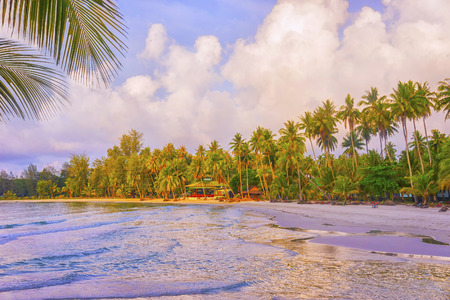 Summer landscape on tropical Koh Kood island in Thailand. Colorful sunset panorama taken on Klong Chao.