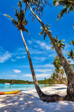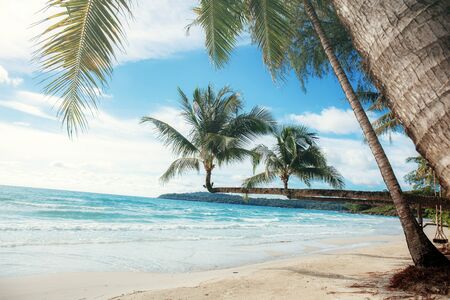 Coconut tree or palm tree at Thung Wua Laen Beach in Chomphon province Thailand, viewpoint of tropical beach seaside and blue sky