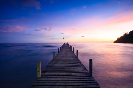 Summer, Travel, Vacation and Holiday concept - Wooden pier between sunset in Phuket, Thailand