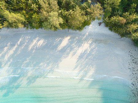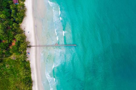 Tropical sea wave white sand beach with green tree aerial view in Koh Kood, Thailand