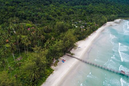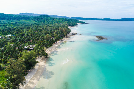 Aerial view sea beach turquoise water nature landscape Koh Kood, Thailand