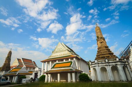 Pagoda in a temple on top attractions of Thailand. Partly sunny in the day.