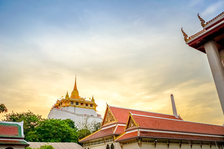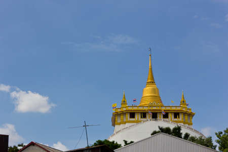 Golden mountain or gold pagoda in the middle of old town of Bangkok, Thailand.
