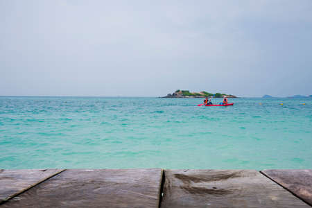 Wooden Bridge beside sea with beautiful seacape in koh lan island, Pattaya, Thailand.