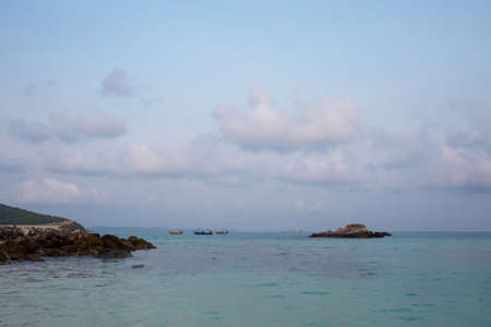 Summer photo of the sea, ocean and islands in the background. Tropical island. Vacations recreation in the summer.