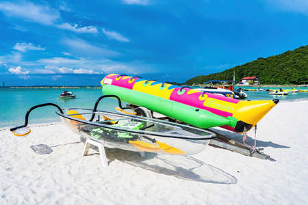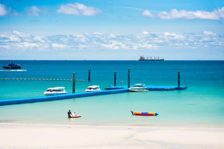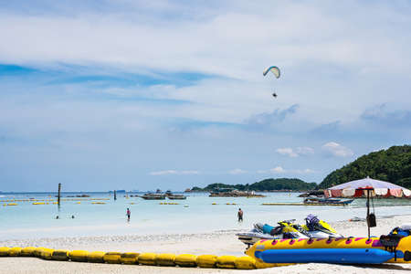 Chon Buri, Thailand - September, 12, 2020 : Pictures of Tawaen Beach in the day time on Koh Lan island after the outbreak of the Covid 19 virus.