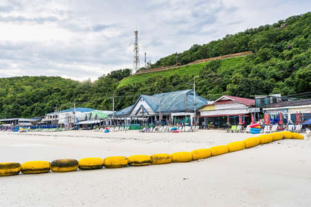 Chon Buri, Thailand - October, 02, 2021 : Pictures of Tawaen Beach in the day time on Koh Lan island after the outbreak of the Covid 19 virus.