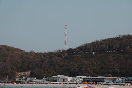 Breathtaking Scenic View Featuring a Communication Tower that Overlooks the Beautiful Coastline