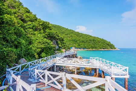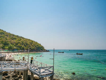 Pattaya, Thailand - January.24.2020: Wooden Bridge with beautiful seacape in koh lan Thailand