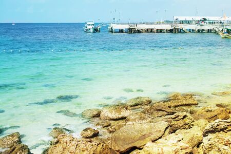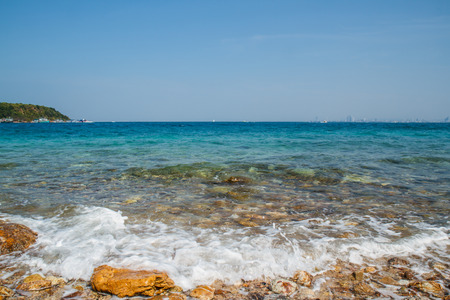 Clear sea and tropical beach on island, at koh lan island Pattaya city Chonburi Thailand.