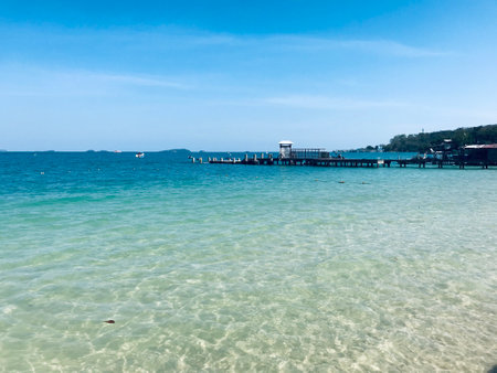 Boardwalk under a blue sky, Larn Island, Pattaya, Chonburi