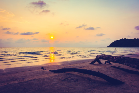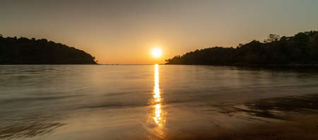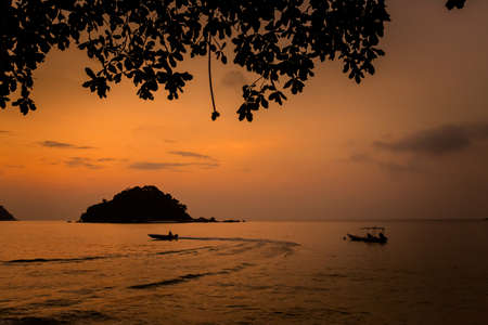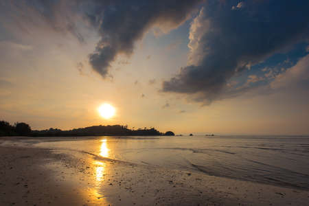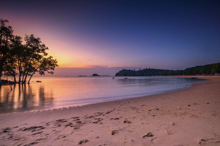 Sunset on tropical beach. Siam bay. Province Trat. Koh Mak island. Kingdom Thailand