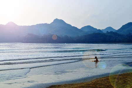 Vintage photo of beautiful beach landscape with cloudy sky and sea with waves. Andaman and Nicobar Islands. India. Indian ocean. retro toning