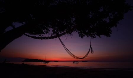 empty hammock for relaxing at the beach during summer vacation at Pangkor Island located in Perak State, Malaysia