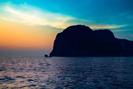 Stunning Golden Hour Sea Scape at Phi Phi Islands in Andaman Sea, Thailand. selective focus