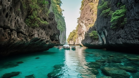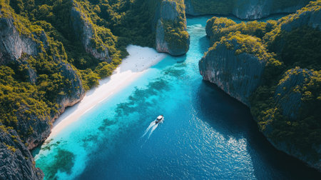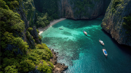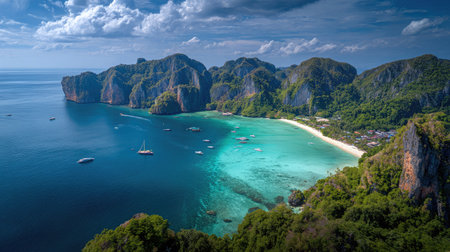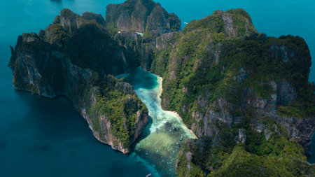 Generative AI : Aerial view of rock formation with high cliffs on Phi Phi island Thailand