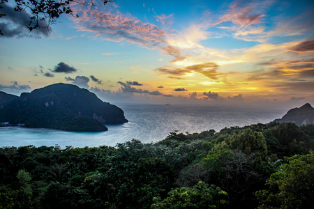 Sunset on the island of Phi Phi Don in Thailand