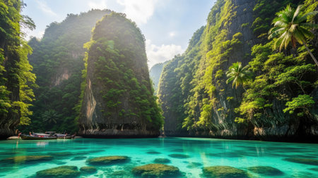 Tranquil Thai islands surrounded by crystal-clear waters and towering mountains. An idyllic travel destination for those in search of natural beauty and serenity.