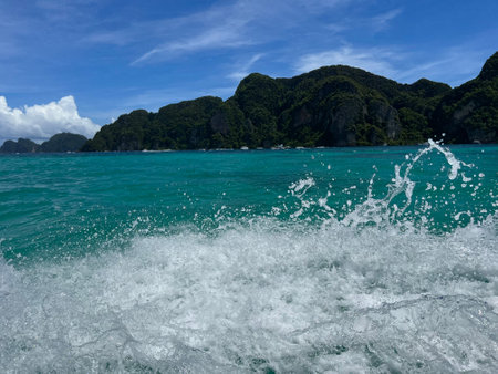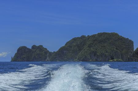 Motor boat in motion near Phi Phi islands, Thailand