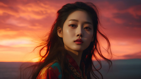 An AI generated illustration of a beautiful Chinese woman wearing vibrant traditional costume