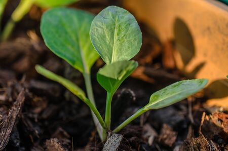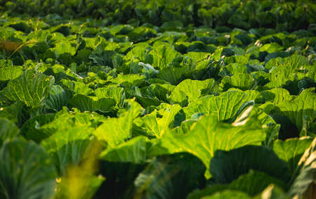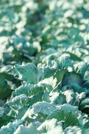 Organic freshly growing cabbage field
