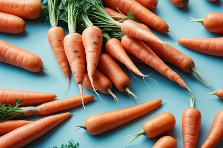 AI Generative Flat lay pattern of ripe carrot vegetable, top view on summer organic fresh background