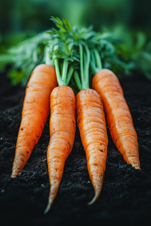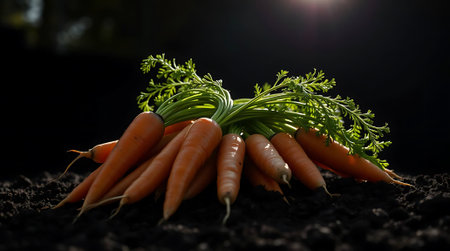 Vibrant carrots fresh from the earth, perfect for healthy eating campaigns, organic food promotions, or farm-to-table lifestyle content.