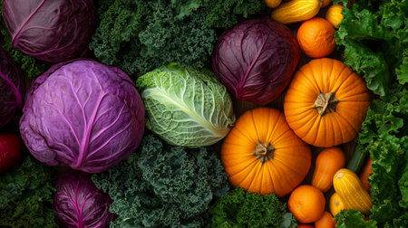 Close up of kale heads, full frame of green kale leaves