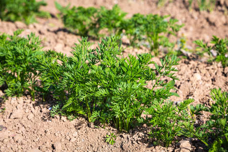 young green carrot plants growing in the garden