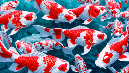 A vibrant image of koi fish swimming in a pond, showcasing their bright colors and graceful movements.