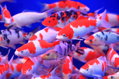 A group of koi fish in the aquarium
