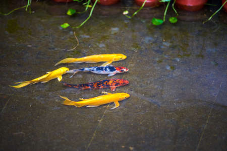 Koi fish swimming in the pond,colorful fancy carp fish