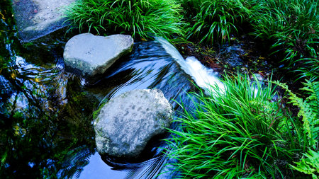 floating leaves gently falling over a tranquil stream, symbolizing the release of negative thoughts and calming the mind --chaos 30 --ar 16:9 --v 6.1 Job ID: 5f8b60f5-a7dc-4222-ae21-588ade6d5baa