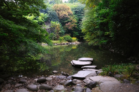View of the bridge in Shinjuku park, Tokyo, Japan. Copy space for text