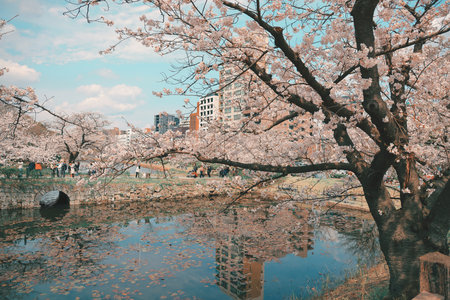 Cherry blossoms in full bloom in Chidorigabuchi in Tokyo