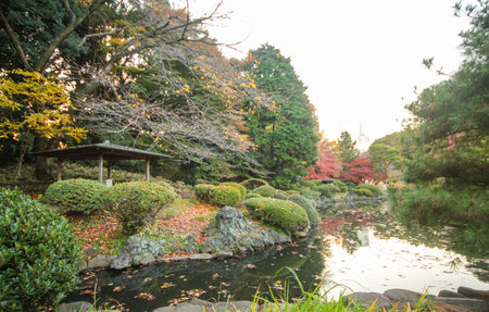 Tokyo, Japan, November 1, 2023: Scenic View of a Traditional Japanese Garden in the City